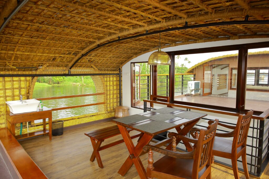 ↓Nestled amidst the serene backwaters of Alleppey, this luxurious 1-bedroom houseboat is a haven of opulence and tranquility.Whether you choose to savor a sumptuous meal on the deck or relish a quiet evening in the cozy bedroom, this houseboat seamlessly blends modern luxury with the timeless charm of Alleppey’s backwaters, creating an unforgettable experience for those seeking the pinnacle of leisure and sophistication.